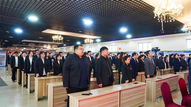 大会在激昂的国歌声中拉开帷幕,雄壮的旋律如警钟般响彻学院礼堂,仿佛百年前五四运动的历史回响穿越时空,在每一位师生心中激起澎湃的家国情怀。