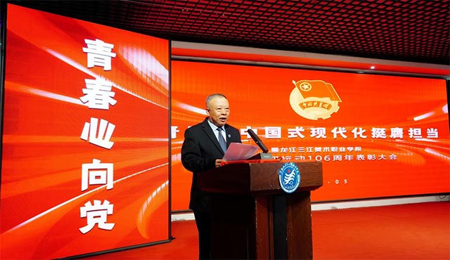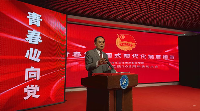 2025年5月6日下午,黑龙江三江美术职业学院在哈尔滨教学实习基地礼堂举行“青春为中国式现代化挺膺担当”纪念五四运动106周年暨共青团先优表彰大会。