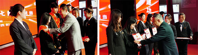 三江美院理事长、院长王英海教授,学院党委书记、省政府督导专员高明学,副院长鞠剑峰、梁晓勃、金红炜等院领导出席表彰大会。