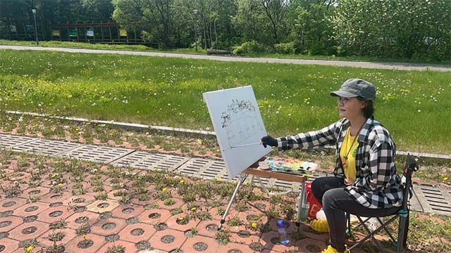 在三江美院教师、油画家刘晓晶的带领下,一众画家与艺术学子走进金龙山森林公园,以油画为笔,以山水为纸,开展写生创作,用艺术笔触描绘金龙山的绝美风光,为这座生态公园注入独特的艺术魅力。