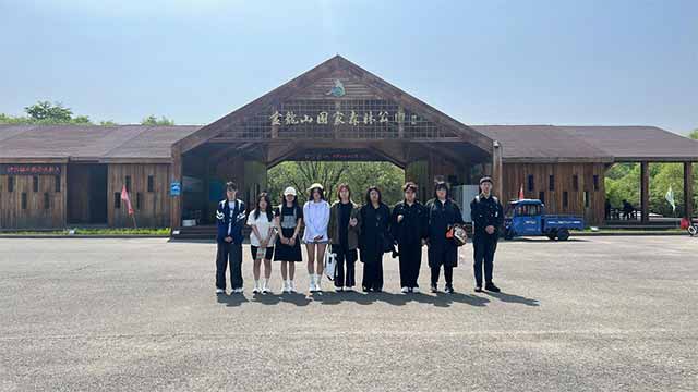 刘晓晶一边创作,一边耐心地指导身边的艺术学子。她表示:“金龙山森林公园的自然风光极具层次感与表现力,丰富的植被在不同的光线下呈现出千变万化的色彩,灵动的溪流又为画面增添了韵律与活力。在这里写生,每一笔落下,都是与大自然的深度对话。这种沉浸式的创作体验,不仅能提升我们的绘画技巧,更能激发我们内心深处的艺术灵感。希望通过我们的画笔,能让更多人领略到金龙山的美,也希望这次产教城融合的实践活动,能让同学们将课堂所学运用到实际创作中,在大自然的怀抱里找到属于自己的艺术语言。”