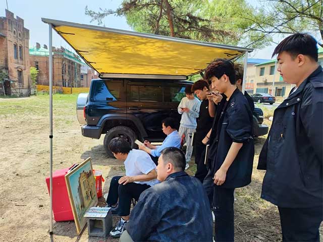 其中,一位绘画组的学生,正以水彩画的形式描绘着一幅糖厂的全景图。他的画笔在画布上轻盈跳跃,仿佛是在与历史进行着一场无声的对话。他说道:“我能够如此近距离地接触这些历史建筑,感受它们所承载的故事与情感;每一笔、每一划,都是我对这片土地的致敬与热爱。”而他的一位同学,则选择以油画的方式表现糖厂的局部细节。她的画笔在画布上厚重地挥洒,将每一处斑驳、每一道裂痕都刻画得栩栩如生。她表示:“这里的每一处细节都充满了艺术感,让我深刻感受到了历史与艺术的完美结合。我希望通过我的画笔,能够让更多的人看到这片遗址的美丽与独特。”