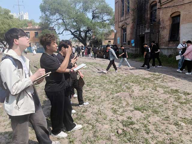 在专业讲解员的引领下,师生们漫步于糖厂遗址的每一个角落。目光从高耸的烟囱到斑驳的墙壁,再到院墙内杂草丛生的空地,每一处都散发着历史的厚重与艺术的魅力。师生们或驻足凝视,沉浸在历史的沉思中;或轻声讨论,分享着彼此的感悟。在这里,历史的印记与艺术的灵感交织碰撞,激发出无尽的创意火花。