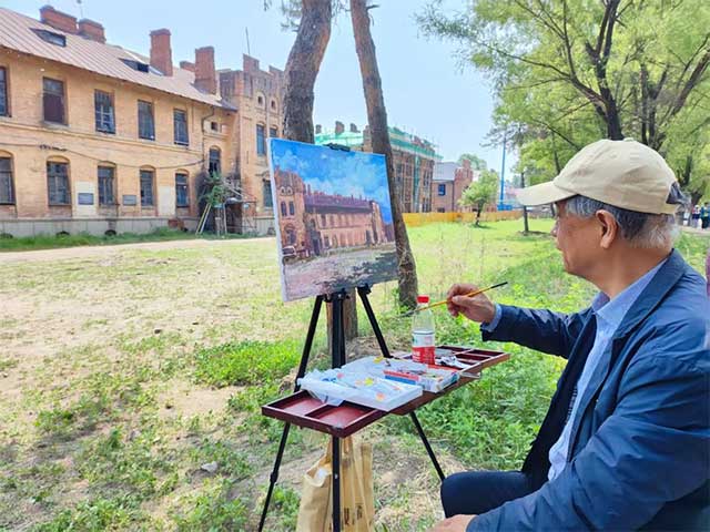 绘画组的师生们,更是这场艺术盛宴中的佼佼者。他们或站或坐,手持画笔,以水彩画、油画等多元表现技法,将眼前的景致一一呈现在画布上。水彩画的轻盈与透明,如同夏日的微风,轻轻拂过糖厂的每一个角落,捕捉着建筑的灵动与岁月的温柔。油画则以其丰富的层次和厚重的质感,展现着历史的沧桑与艺术的深沉。有的画面细腻入微,将糖厂建筑的每一个细节都刻画得淋漓尽致;有的则大胆创新,将历史与现代元素巧妙融合,展现出独特的艺术风格。在他们的笔下,糖厂建筑遗址不仅是一处历史的遗迹,更是一座创意无界的艺术殿堂。