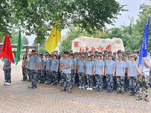 拓展训练后全体师生和教官在红色印记园纪念碑前合影留念。镜头前同学们意气风发,眼神中透露着坚定自信,仿佛在宣告,他们已经做好了迎接未来生活各种挑战的准备。