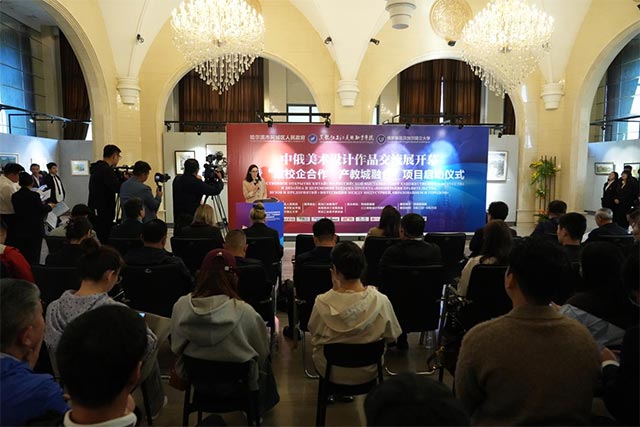 此次访问的核心内容之一,是于9月22日在阿城区美术馆隆重开幕的中俄美术设计作品交流展。本次展览由三江美院、后贝加尔国立大学及阿城区人民政府联合主办,共展出来自俄方的15件美术作品与三江美院师生的50件美术作品、40余件设计类作品。展览恰逢中俄两国文化教育领域合作开启新篇章的历史时刻,旨在以“艺术与设计”为纽带,编织两国师生共同谱写的视觉诗篇。展厅内,俄罗斯油画传统的深沉厚重与中国写意绘画的空灵意境交相辉映,在设计思维的催化下,展现出跨越文化疆界的创新活力。这不仅是一场技艺的展示,更是一次不同文化的深度对话,为“中俄文化年”增添了璀璨的龙江色彩。