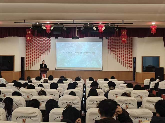 2026年3月25日,春暖花开,微风和煦。上午10时30分,三江美院北京教学实习基地“3·25善爱同行·温暖我心”心理健康教育专题讲座在东教楼报告厅举行。本次讲座邀请北京教学实习基地资深心理咨询师葛霖老师担任主讲,旨在引导广大学生关注自身心理健康,学会善待自我、温暖他人。活动由北京教学实习基地党支部副书记李昂主持。