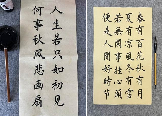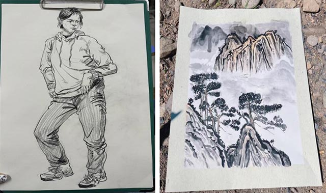 23美教杨朗月同学,她的书法和国画作品给大家留下深刻印象,在国画创作中,擅长描绘山水花鸟,其笔下的山水画作层次丰富,墨色浓淡相宜,以灵动的笔触勾勒出山势的雄伟、溪流的潺潺,让人仿若置身于诗意的山水之间。在书法领域,他对多种书体都有深入研究,行草作品笔锋刚劲有力,行云流水间尽显洒脱豪迈;楷书作品则笔画规整,结构严谨,尽显端庄大气。丰富的创意和独特的想法,为传统书画艺术注入了新活力。凭借精湛的技艺,她的作品多次在校内展览中脱颖而出,赢得师生的一致好评,成为同学们学习的榜样,激励更多人探索国画与书法艺术的无限魅力 。