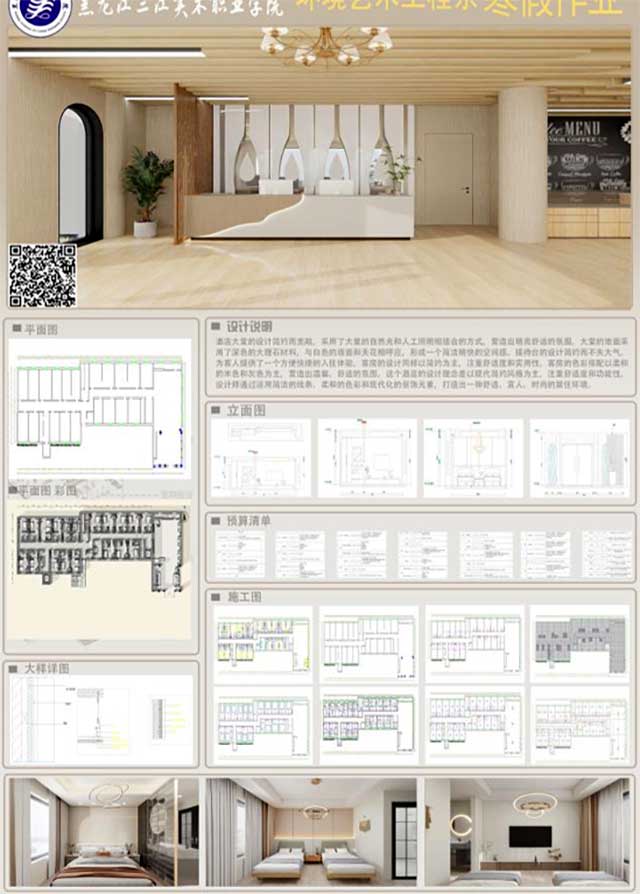 23环艺楚妍妍同学专业是室内设计。他认为,室内设计是一个需要不断思考和探索的过程。从最初的构思到最终的呈现,每一个细节都需要我反复推敲与打磨。他在学习中,不断地寻找灵感,尝试不同的布局、色彩和材质搭配,力求将空间的实用性与美观性完美结合。在这个过程中,她学会了如何平衡各种元素,让设计既符合客户的需求,又能展现出独特的个性。其次,室内设计也是一个需要不断和客户沟通协调的过程。在与客户和团队成员的交流中,他学会了倾听他们的意见与建议,尊重他们的审美与需求。同时,我也学会了如何将自己的设计理念与创意有效地传达给他们,让设计作品更加符合大家的期望。在未来的设计道路上,她将会继续探索、创新,为客户创造出更多美好的室内空间。