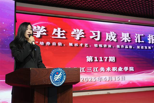 2025年4月15日,三江美院第117次学生学习成果汇报在哈尔滨教学实习基地学院礼堂举行。汇报汇聚了美术教育系、数字传媒系、环境艺术工程系、影视动画与服装工程系及北京教学实习基地的10名学子。本期汇报会由环境艺术工程系教师侯婷主持。