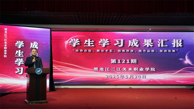 5月20日,黑龙江三江美术职业学院第121期学生学习成果汇报会在学院哈尔滨教学实习基地演播大厅如期举行。来自4个教学系和1个教学实习基地的10名同学参与了本期汇报。