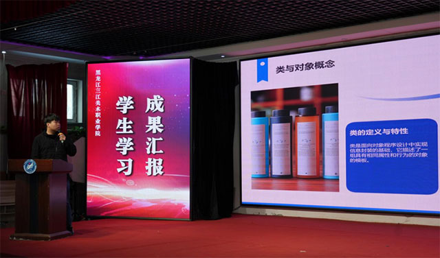 数字传媒系2023级软件一班的张国怡同学率先登场,以专业自信的姿态拉开汇报序幕。毕业于绥棱林业局中学的他,凭借扎实的专业积累与创新思维,献上一场精彩的成果展示。汇报中,张国怡围绕Java学习展开深度分享,从理论框架解析到实践路径规划,尽显深厚的知识储备与清晰的逻辑思维。他详细阐述了在线课程精研、实践项目打磨、开发者社区互动的多维学习模式——通过在线课程夯实基础,在实战项目中锤炼技能,与行业伙伴探讨技术难题,不仅拓宽了技术视野,更构建起高效解决问题的能力体系。现场展示的专业作品,将理论知识与创新实践深度融合,充分彰显其在数字领域的探索热情与成长潜力。