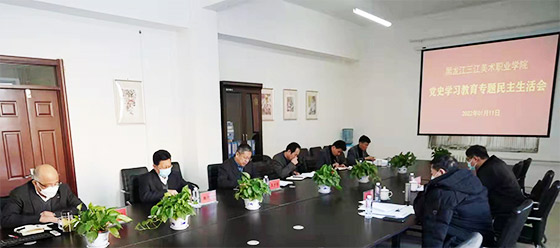 1月11日,黑龙江三江美术职业学院党委领导班子党史学习教育专题民主生活会在哈尔滨教学实习基地召开。省委高校工委第三巡回指导组省教育厅政策法规处一级调研员李智育,指导组成员、省学生体卫艺活动事务中心活动管理办公室主任汪建军莅临会议进行指导。