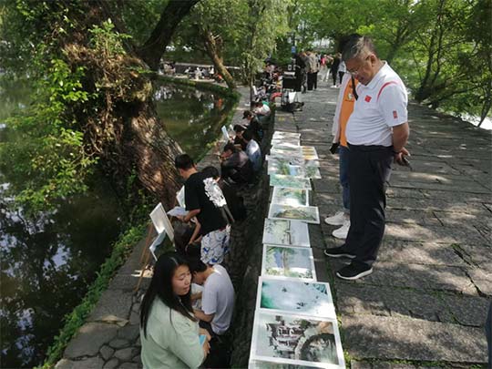 王少青书记首先来到正在外地进行实践教学的学院北京教学实习基地2022级师生中间,与师生们谈心谈话,征求师生对推动学院高质量发展等方面的建议或意见。他希望同学们一要珍惜此次外出写生的机会,珍惜在三江美院北京基地学习的美好时光;二要树立自信,要以三江美院历届优秀校友为榜样,要自信满满地学习,自信满满地生活,争取有美好的未来。当他看到同学们依靠自己所学,用创作的优秀作品为当地百姓和游客提供服务时说:“青年人的志向要与国家和人民群众的需要结合在一起,美术院校的大学生就是要以为人民群众提供健康向上的精神食粮为己任”。