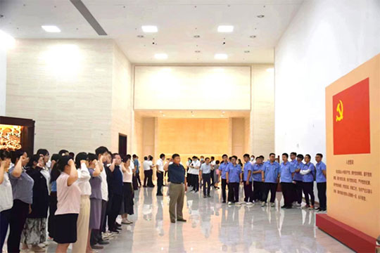 参观结束后,全体党员来到展览馆尾厅,在党支部书记丁春生的带领下,面对党旗高高举起右手,庄严宣誓,重温自己对党忠诚的誓言,表达坚决听党话、永远跟党走的决心,继续发扬伟大的建党精神,不忘初心,牢记使命,勇于担当,敢于斗争,为全面建设社会主义现代化国家、全面推进中华民族伟大复兴而团结奋斗。铿锵有力的宣誓声响彻大厅。