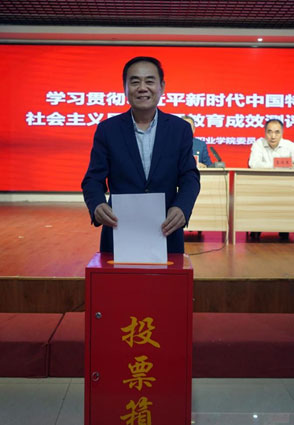 专题民主生活会后,督导组组织学院百余名师生对学院主题教育成效进行了测评。测评会上,党委书记王少青向与会师生报告了主题教育取得的成效、存在的不足、今后的努力方向。高汉东组长对测评提出了具体要求。学院理事会理事长、院长王英海教授参加了测评。