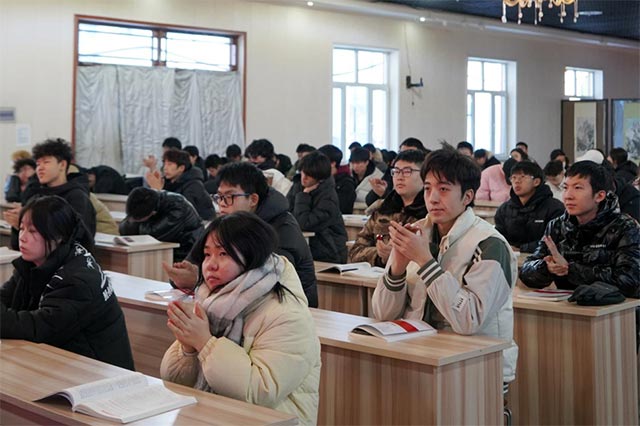 为深入学习贯彻党的二十届三中全会精神,推深做实“大思政”育人体系建设, 2024年12月2日上午,学院党委书记、省政府督导专员高明学为环境艺术工程系学子讲授了一堂精彩生动、意蕴深远的思政课。环境艺术工程系教师、学生入党积极分子、团学骨干等150余名学生代表参加了思政课学习。