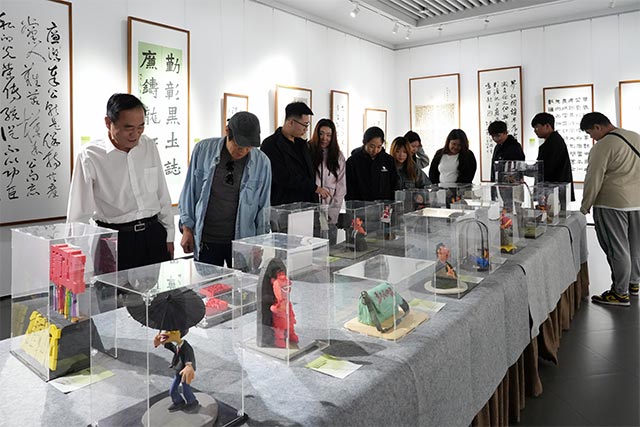 本次展览以"勤廉"为核心主题,通过"书怀公仆情,丹青颂勤廉""伟业开天地,党旗映清心"等八大板块,集中展示了中国画、漫塑、剪纸、书法等12类艺术形式的200余件作品。其中,艺术疗愈与人工智能学院师生创作的13件参展作品脱颖而出,获金奖1项、铜奖1项、优秀奖5项及入选作品6项。这些作品以创新的艺术语言,将廉洁文化与时代精神相结合,生动展现了新时代青年对勤廉价值观的理解与践行。