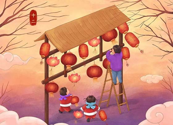 过了正月十一,人们开始准备庆祝元宵佳节,从正月十二开始选购灯笼,搭盖灯棚。童谣是这么唱的:“十一嚷喳喳,十二搭灯棚,十三人开灯,十四灯正明,十五行月半,十六人完灯。”