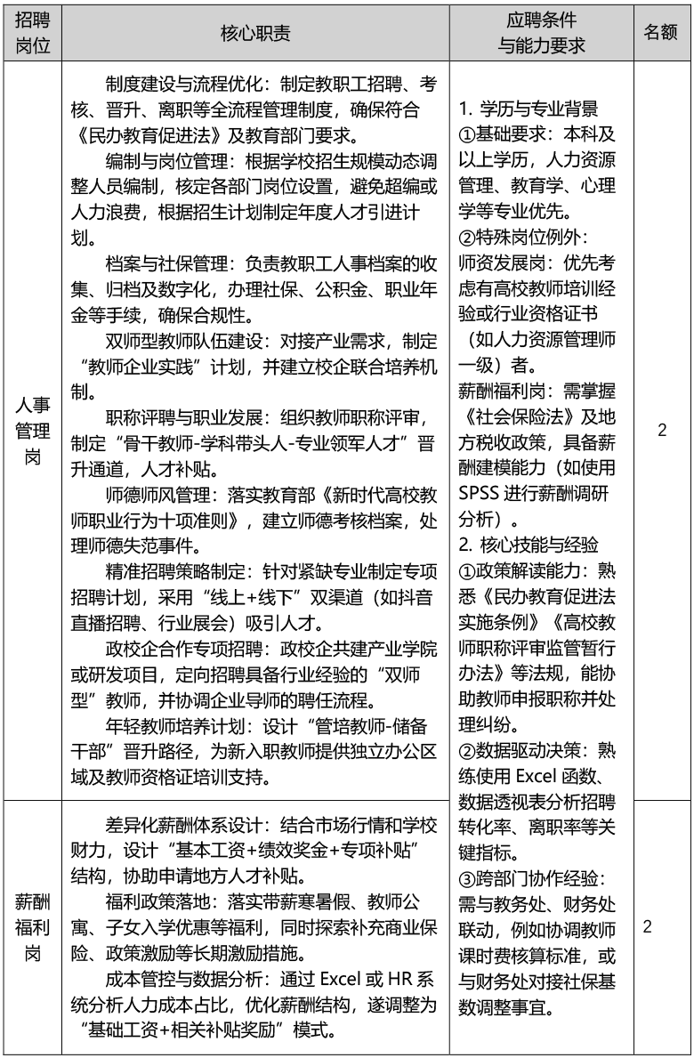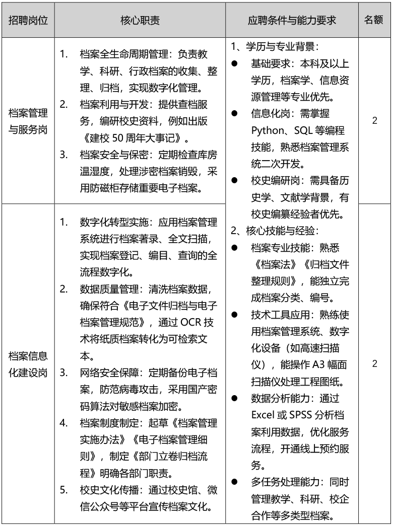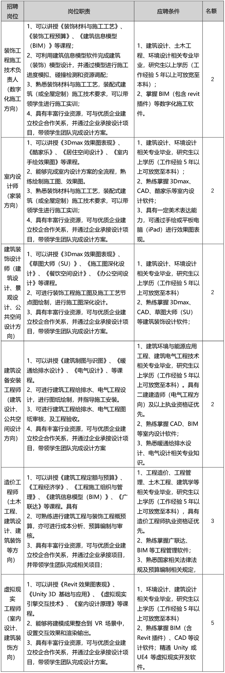四、具体招聘岗位与相关要求